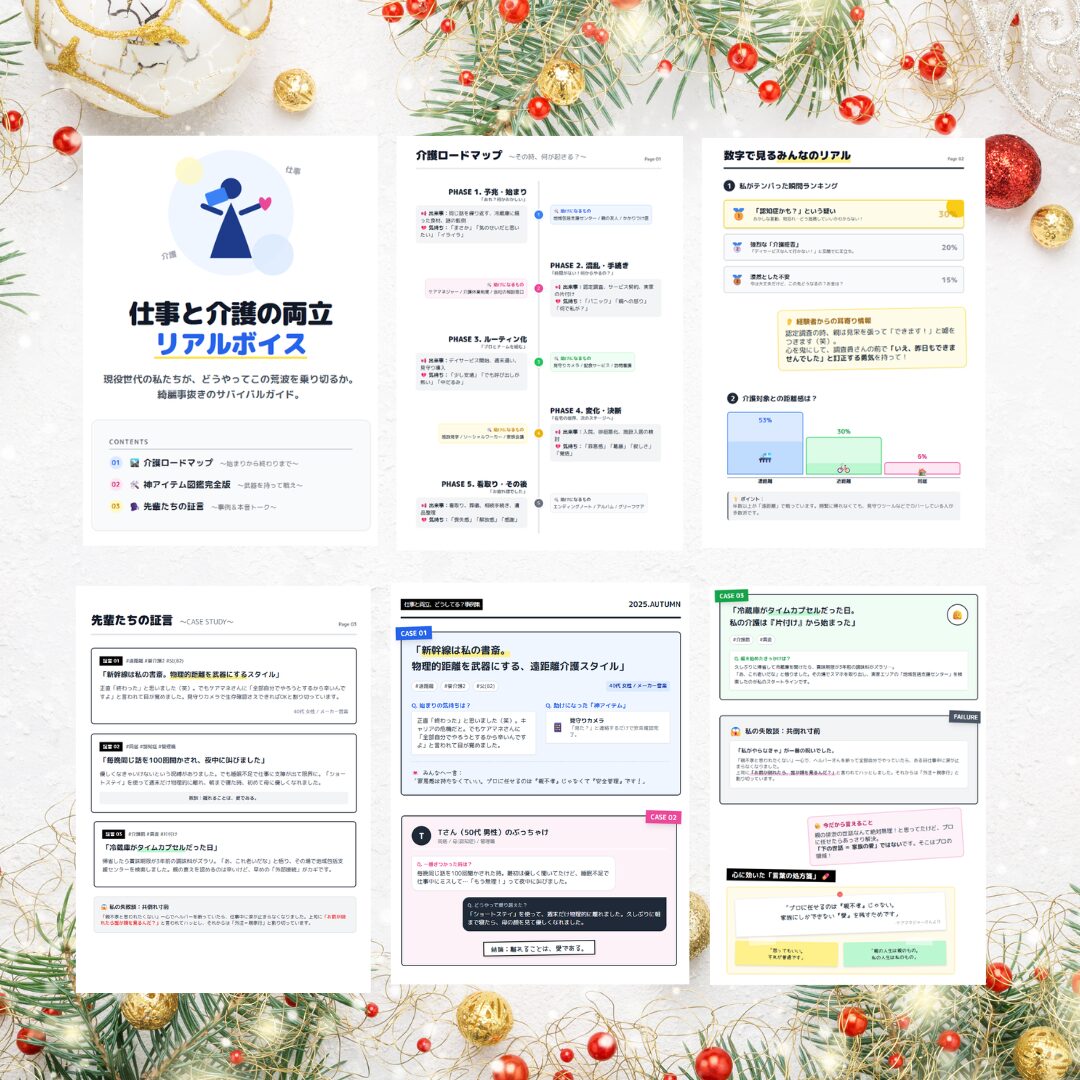 ・親の将来や介護に不安を感じている方 ・親の介護や老いによる仕事への影響や心構えなどを学んでおきたい方 ・介護経験や闘病生活など、皆さんがどのように付き合ってこられたか追体験してみたい方 ・いざという時に慌てないための実践ポイントについて知りたい方