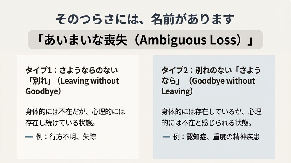 「はっきりしないまま残り、解決することも、決着を見ることも不可能な喪失体験」