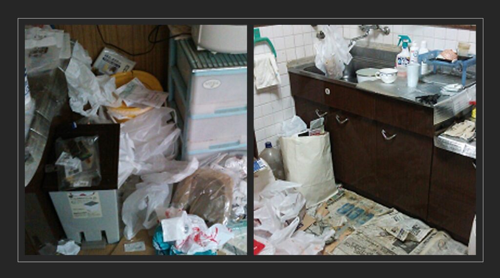 実家のドアを開けた瞬間、現実を突きつけられます。異臭、床に散乱したゴミ、ベタつく室内。足の踏み場もない部屋で、母は何事もなかったかのように冷蔵庫から食べ物を手づかみで口に運んでいました。「骨折」は事実ではありませんでしたが、生活が破綻していることは一目で分かる状態でした。