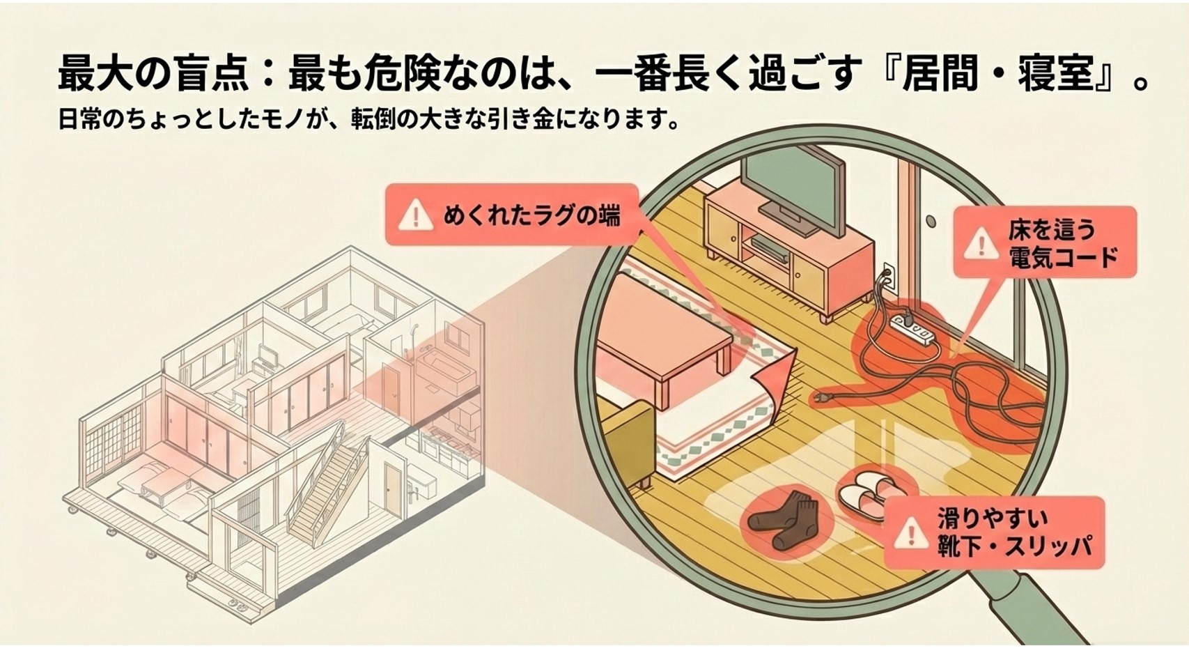 小さな工夫でも、転倒リスクを大きく減らすことができます。
