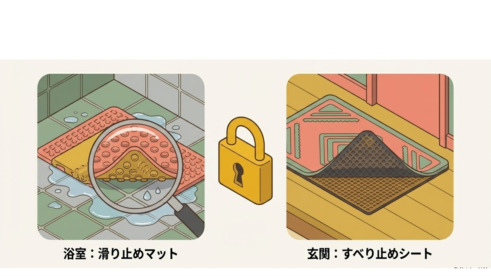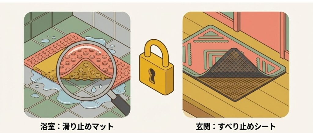 滑りやすい場所は、環境を整えることで改善できます。