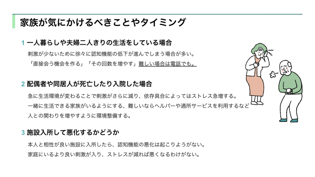 ご家族に気にかけていただきたいこと、そしてそのタイミングについてもご説明をいたします。