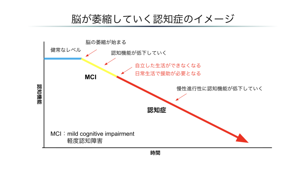 実は、認知症の症状には段階があります。MCI(軽度認知障害)という認知症一歩手前の状態で早期発見できていれば、改善して認知症を予防することもできるのです。