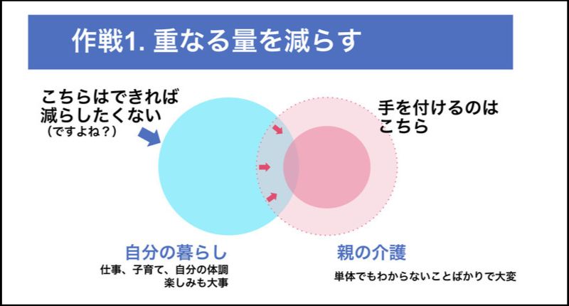 そこで、できれば親の介護が重なる量を減らしていくのがポイントです。そのためのヒントをご紹介します。