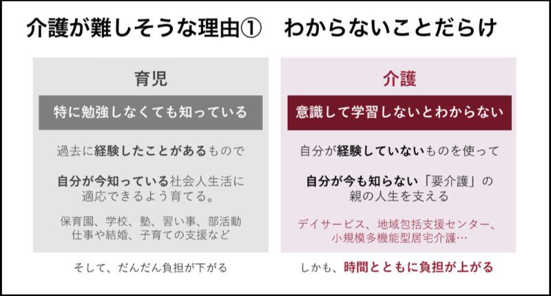 育児と介護の違いについて見ていくと、何についてわからないことが難しそうと感じる原因になっているのか見えてきます。