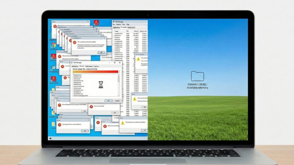 この状態で「仕事のメールを一本返す」という、普段ならテキストエディタを開く程度の軽い処理をしようとしても、システム全体が重すぎて動きません。「メール一本打つのに30分かかる」という現象は、こうして起こります。